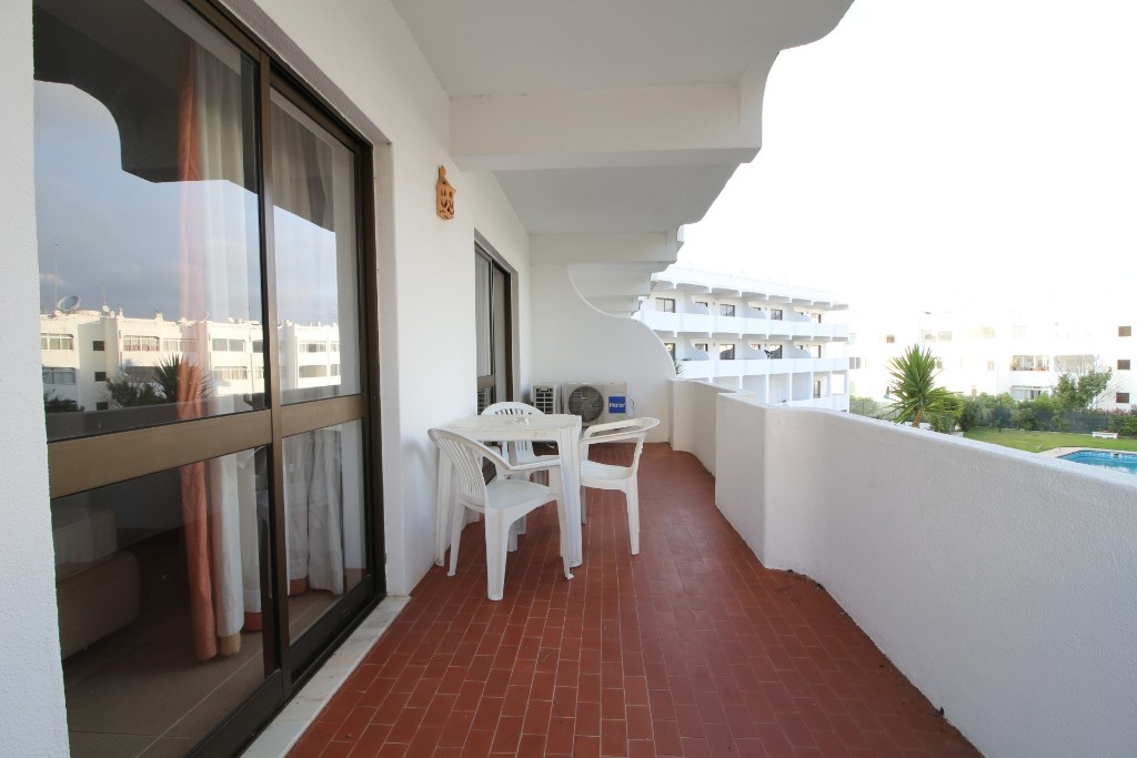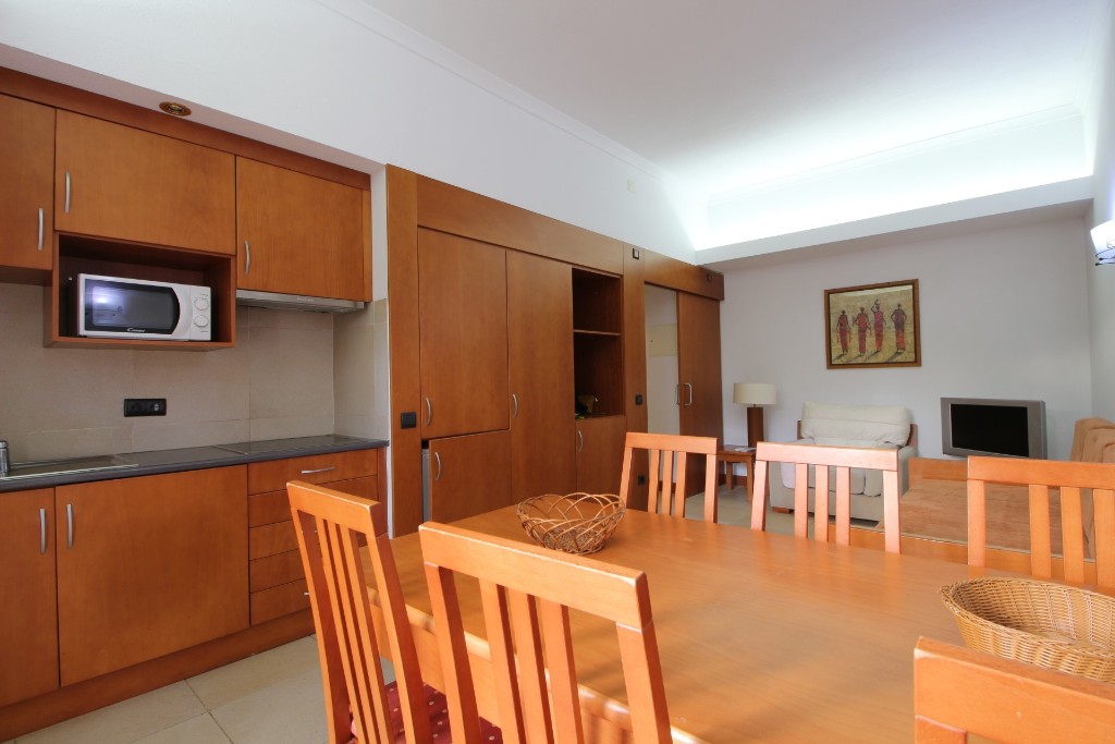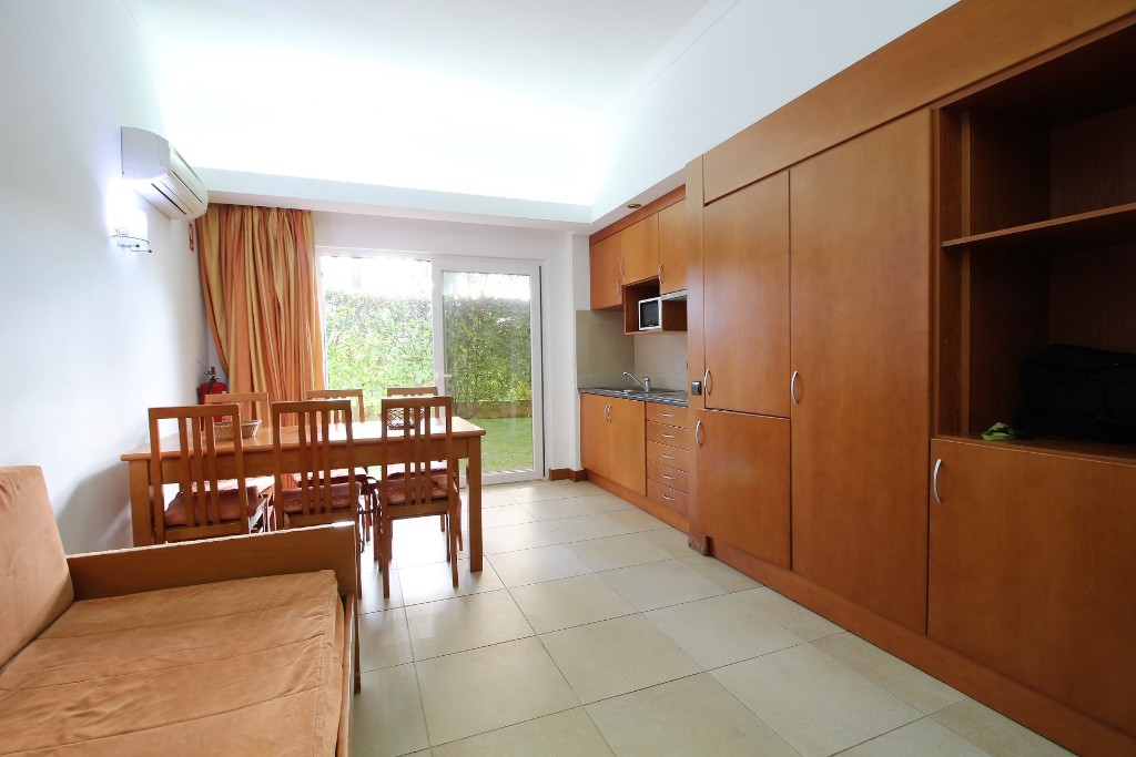 Квартира складається з вітальні, кухні відкритого простору, спальні з вбудованими шафами та ванною кімнатою та балконом з видом на басейн.